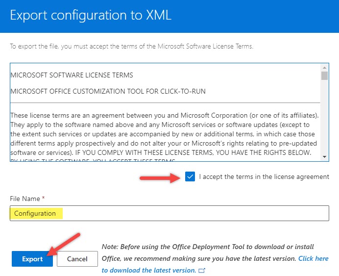 - พิมพ์ setup.exe /configure Configuration.xml ต่อท้ายเพื่อเรียกคำสั่งติดตั้ง