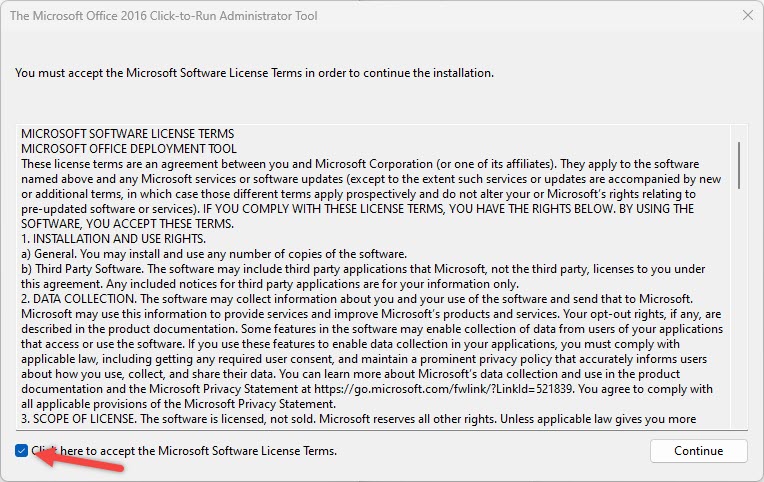 - คลิก ⁄ ที่ช่อง Click here to accept the Microsoft Software License Terms.