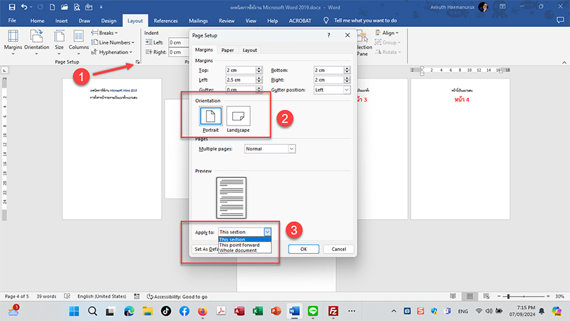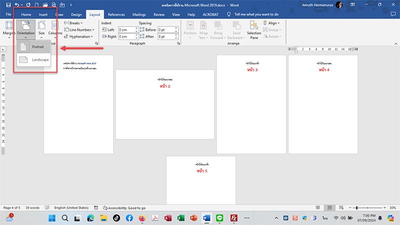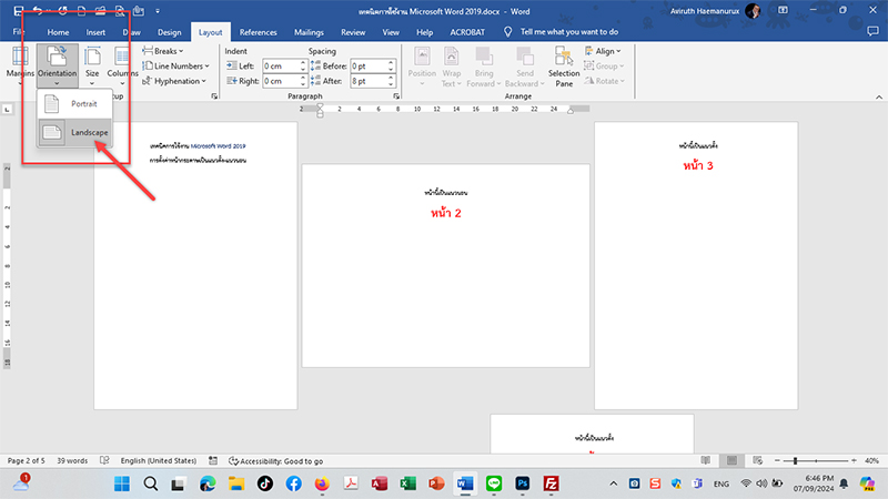 การตั้งค่าหน้ากระดาษเป็นแนวตั้ง-แนวนอนใน Microsoft Word 2019