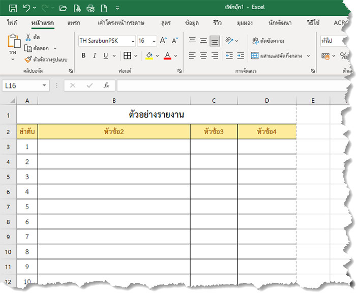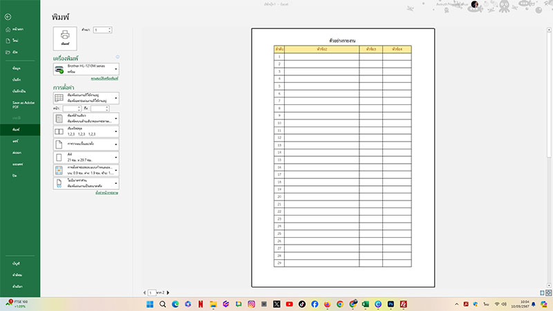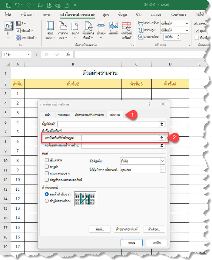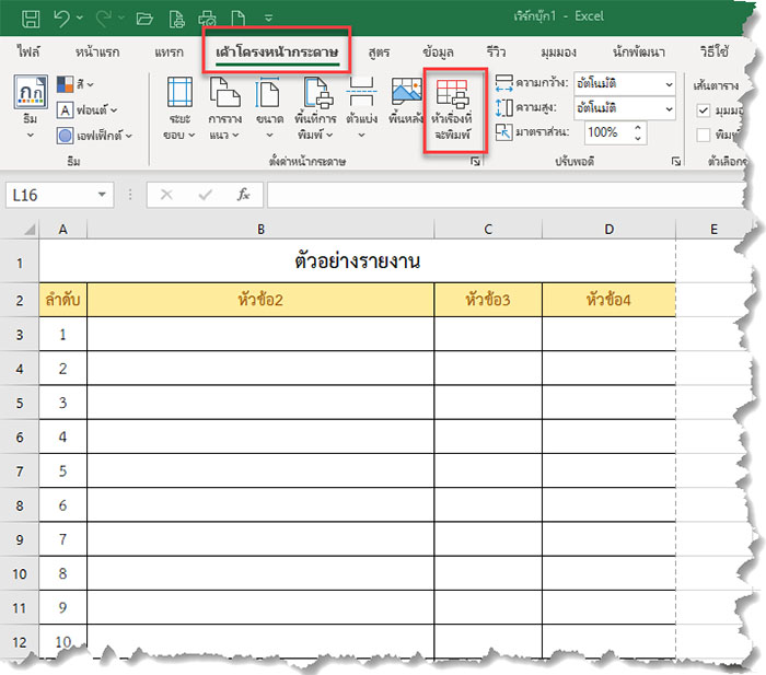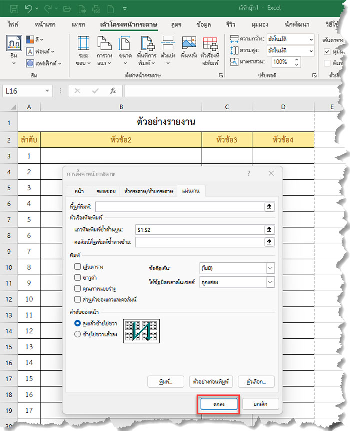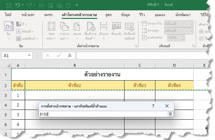 เพียงเท่านี้ เมื่อคุณพิมพ์หรือแสดงตัวอย่างการพิมพ์ (Print Preview) ส่วนหัวของตารางจะปรากฏที่ด้านบนของทุกหน้าโดยอัตโนมัติ